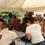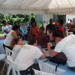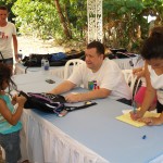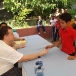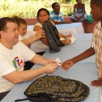 Each backpack contained notebooks, pencils, erasers, glue, rulers, etc. For younger kids, they would include materials like crayons and pencil crayons, too. Since we have a limited supply of backpacks, we distributed tickets to children in various different neighbourhoods and collected their names during the weeks leading up to the event. This way we could prepare and plan the amount of backpacks we’ll need.