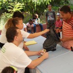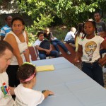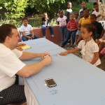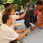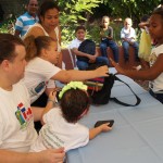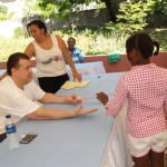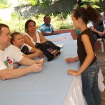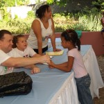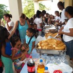 It started off at Peter’s house; where volunteers helped cook 250 hotdogs and supplied refreshing drinks for after the event was over. Due to extreme heat, the event started at 4:30p.m. However, parents and their children started arriving as early as 1:00p.m. Luckily, we had provided gazebos so attendees could relax in the shade until the start time.